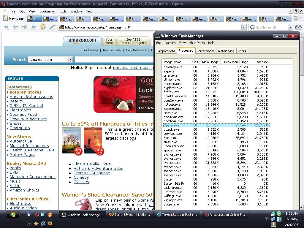Now here's Opera with 16 tabs open , that too with all amazon pages(all diff pages) which gets FF's mem usage into the 200Mb+ mark. Opera uses just 25Mb.