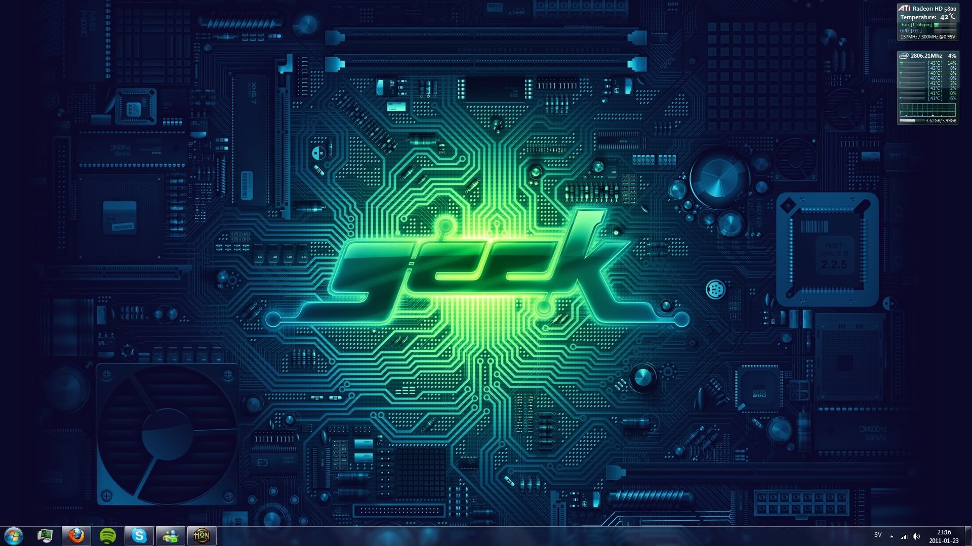 Edit: Unless u meant that green icon in the lower left side... then it is infact Spotify, thought u meant the gpu & cpu readers